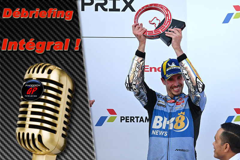 🎤 Une troisième place vient donc compléter une journée exceptionnelle pour l’équipe BK8 Gresini Racing. Alex, ce fut une course très longue et éprouvante de 27 tours, mais en sortir avec un podium représente une superbe journée pour l’équipe et un dimanche solide pour vous ici en Indonésie.