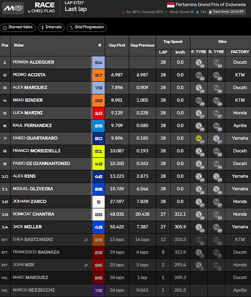 Résultats du Grand Prix d’Indonésie MotoGP à Mandalika :