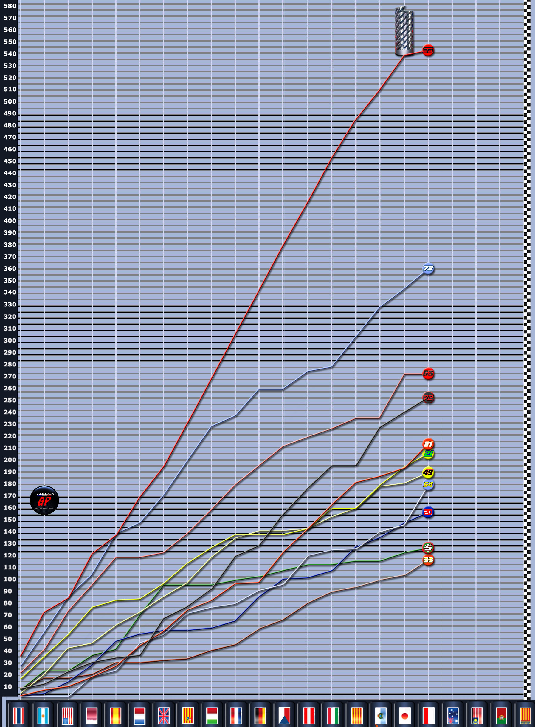 Il est maintenant 8e au championnat, à seulement 10 points de Fabio Di Giannantonio et 23 points devant Fabio Quartararo qu’il vient de dépasser.