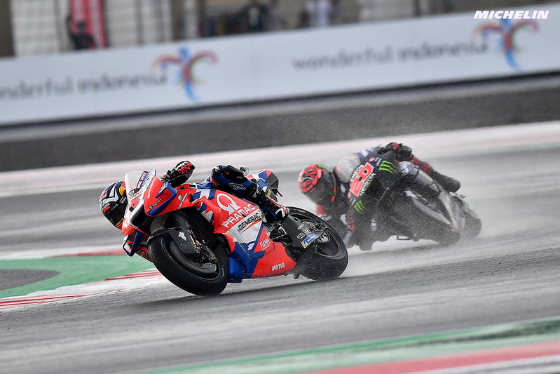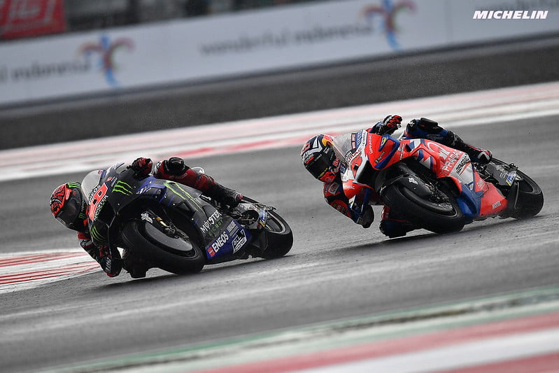 « Les conditions étaient bien meilleures que lors du test et le nouvel asphalte qu’ils ont posé était vraiment bon, même si il y a deux patchs qui n’ont pas pu sécher samedi. Mais il était plutôt bien. Je pense que si dans le dernier virage l’asphalte se désagrège si rapidement, c’est parce qu’ils n’ont pas eu assez de temps pour le faire vraiment parfaitement. Peut-être que les conditions Indonésie, avec la pluie et la chaleur, peut-être que cela n’aide pas vraiment terminer correctement le revêtement. L’année prochaine, si nous avons une course de 27 tours, le plus difficile sera plus pour les pilotes avec la chaleur que pour la piste, car je pense qu’ils sont capables de la réparer. Donc oui, c’était bien mieux que pendant le test, mais ce matin j’ai fait mon warm up derrière Bezzecchi et j’ai eu des bleus sur le cou et sur les bras, donc il y a encore des petites choses qui proviennent du tarmac. »