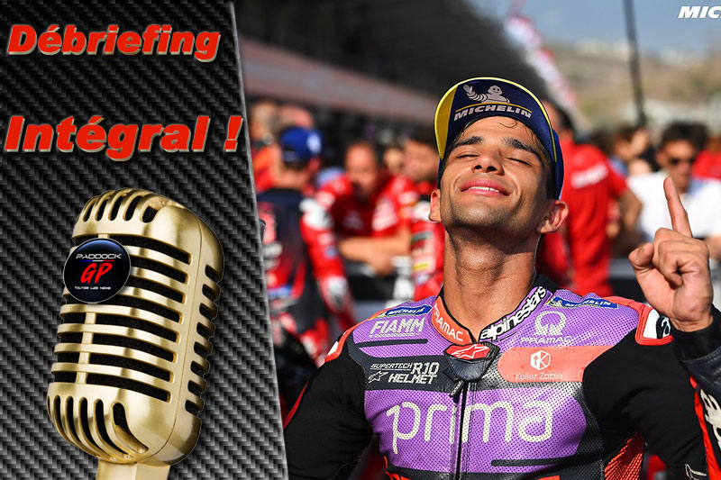 Mesdames et messieurs, nous allons commencer la conférence de presse d’après course du Grand Prix Pertamina d’Indonésie, sur le circuit Pertamina Mandalika, manche 15. Félicitations à Jorge Martin, vainqueur de la course pour Prima Pramac Racing, et à Pedro Acosta, deuxième pour Red BullGASGAS Tech3, qui occupait le premier rang à droite de la grille de départ, Pedro Acosta qui est le vainqueur en Moto2 ici même l’année dernière, et pour compléter le top 3 d’aujourd’hui, le champion du monde en titre de l’équipe Ducati Lenovo, Pecco Bagnaia. Messieurs, félicitations à tous les trois, les conditions étaient très difficiles cet après-midi, il faisait chaud, humide et très, très venteux aussi.