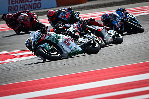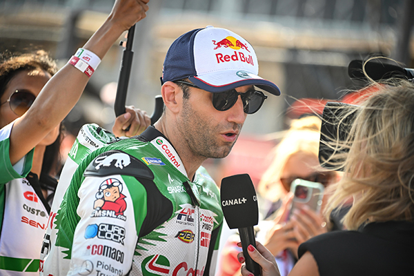 » Super content ! C’est une belle 9e place. Peut-être même qu’on peut gagner deux places avec le règlement des pressions de pneus (rire). On va voir le résultat final, mais bon instinct sur les deux premiers virages, parce que bon, au départ dès qu’on met le second rapport on ne peut pas bien avancer. J’ai réussi à être très proche des autres pilotes sur le premier virage et je sentais Miller et Aleix déjà presque se chercher un peu, et quand je les ai vus dans le deuxième virage j’ai dit “juste je regarde. Pour le 3e, je ne veux pas rentrer avec eux”. Et j’ai bien fait, parce qu’en fait c’était moi le suivant. Donc je suis passé, là j’ai dit “ça, c’est déjà, on va dire ça de gagné. Après, j’ai rejoint le groupe devant et là, pas facile ! Ce côté yo yo à l’accélération du dernier virage où la moto cabre, on perd un peu, je me sentais bien au freinage. Voilà, j’avais du mal à pouvoir doubler. J’ai quand même essayé parce que Vinales, il a eu du mal en début de course. Après, Binder, il a eu un peu de mal aussi, j’ai pu le passer mais Fabio l’a fait avant moi, parce que Fabio m’a rattrapé. Il m’a passé, il a passé Binder, il est parti. Et une fois passé Binder, j’ai tenté de rattraper Fabio mais il a fait quelques tours en dessous de 31, et moi je ne les avais pas ces tours-là. Et sur la fin, eh ben j’étais un peu sec (rire) et je tente de récupérer à l’avantdernier tour pour dire je fais un extra push sur le dernier tour”, mais Binder m’a attaqué. J’ai tenté de réattaquer mais sa force c’est aussi le freinage et l’entrée de virage, et je n‘ai pas réussi à trouver l’ouverture. Mais j’étais content.