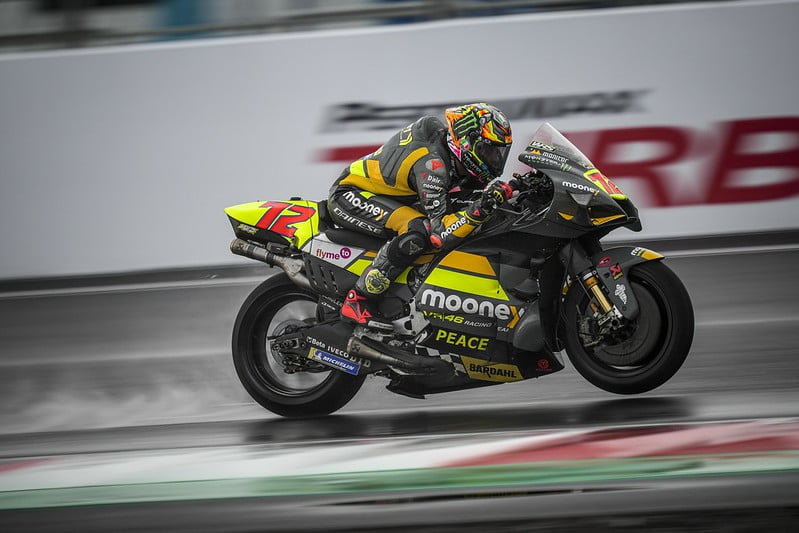 La simple lecture du classement final nous montre un Marco Bezzecchi à près de 50 secondes du vainqueur Miguel Oliveira, et il serait facile de penser que cela s’explique par les débuts du pilote du Mooney VR46 Racing Team dans la catégorie reine, ainsi que par sa première course sur le mouillé…