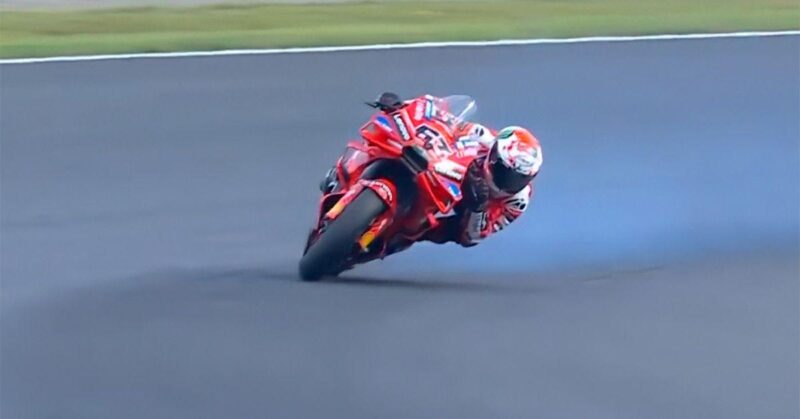La scène a marqué les caméras et les pilotes : la Ducati officielle de Bagnaia semblait sur le point de rendre l’âme. Pourtant, malgré ces signaux alarmants, la machine n’a montré aucune perte de liquide claire — un détail capital au regard du règlement, qui interdit expressément de poursuivre en cas de fuite avérée.