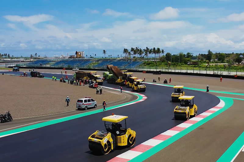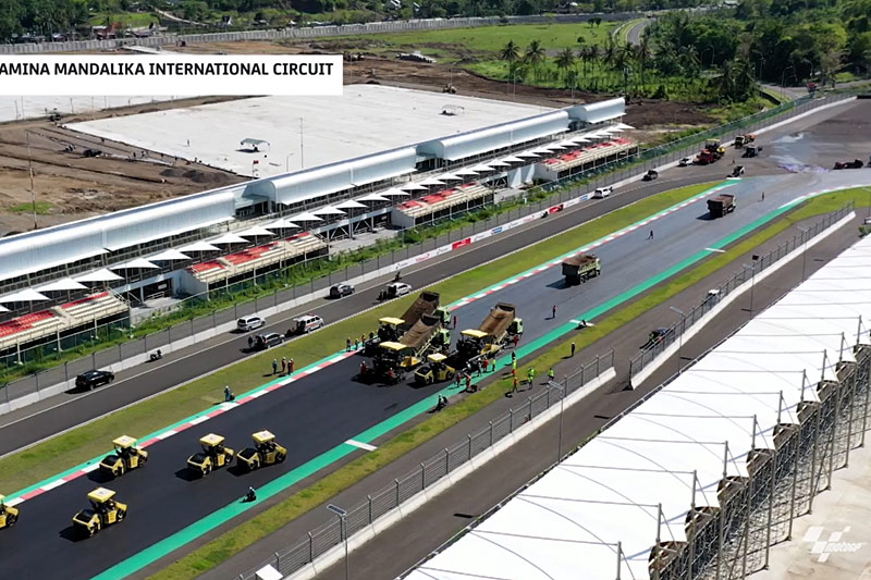 En effet, dès le test MotoGP d’intersaison de trois jours qui s’y est déroulé en février 2022, l’asphalte a commencé à se dégrader rapidement, projetant même des cailloux sur les pilotes qui suivaient, en particulier dans les zones d’accélération et de freinage élevées comme le premier et le dernier virage. Dirigé par la société italienne Dromo, un resurfaçage partiel (du virage 17 au virage 5) a donc eu lieu avant le Grand Prix, en mars 2022, avec un asphalte nommé « Rinjani » en hommage au volcan de l’île de Lombok où se trouve le circuit de Mandalika.