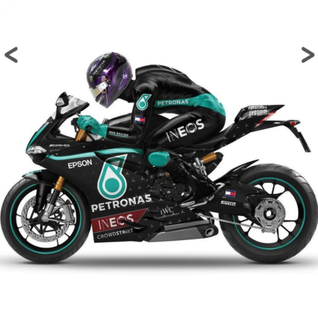 Depuis quelques saisons, c’est la moto qui offre le plus beau spectacle sur la piste et il s’agit d’un constat fait par les pilotes de Formule 1 eux-mêmes. Le plus capé d’entre eux, Lewis Hamilton, adore à ce point le milieu qu’il s’organise des tours de Yamaha M1 avec Valentino Rossi, qui goûte à sa Mercedes. Et si dans un monde parallèle, les deux univers inversaient leurs couleurs ? Voilà ce que ça donnerait…
