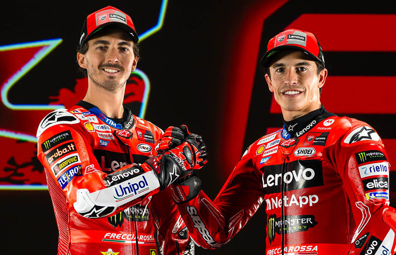 Mais revenons à notre sujet, Pecco est un gentleman. Pecco est un pilote très rapide, c’est un pilote très complet. Je pense qu’il a fait une très bonne saison l’année dernière, mais il a commis quelques erreurs. Voyons ce qui se passera avec les autres marques de motos, comme Aprilia ou KTM et d’autres, si elles se rapprochent, ou Yamaha qui semble faire ce pas en avant. Mais entre eux deux, je pense que ce sera un championnat propre, j’en suis convaincu. Je pense que Marc est évidemment plus rapide que Pecco, et Pecco est un pilote très complet dans toutes les conditions. Je pense que celui qui commettra le moins d’erreurs sera champion du monde ».