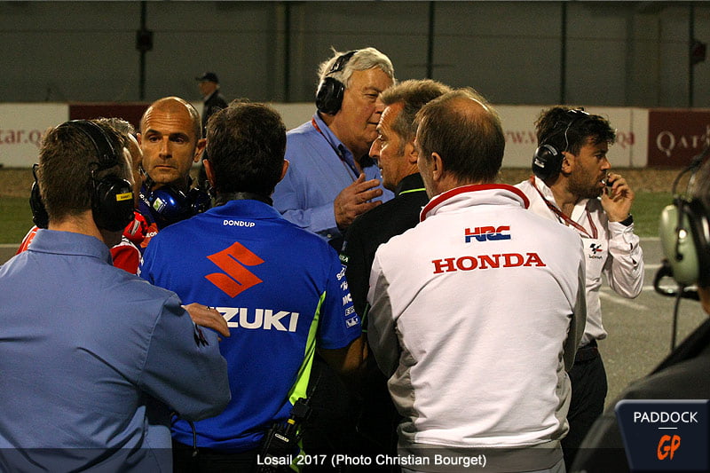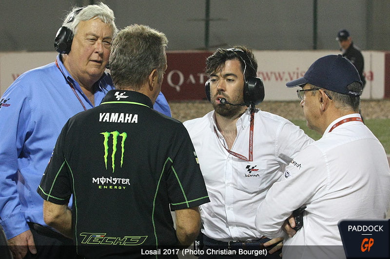 « Depuis qu’il y a la catégorie MotoGP, ce comité est maintenant composé de tous les teams managers de la catégorie MotoGP, que ce soit Factory ou indépendant, plus deux team managers de Moto2 et un ou deux team managers de Moto3. Il y a également Geoff Dixon le paddock manager, Danny Aldridge le directeur technique, Mike Webb le directeur de course, Carlos Ezpeleta qui représente la Dorna, un représentant Michelin et un représentant Dunlop. Aujourd’hui, ce comité n’est donc plus totalement élu par l’assemblée générale, puisque les élections ne concernent plus que les représentants des Moto2 et Moto3. »
