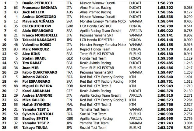 11e Johann Zarco, Red Bull KTM Factory Racing 1:59.973 à 1.076