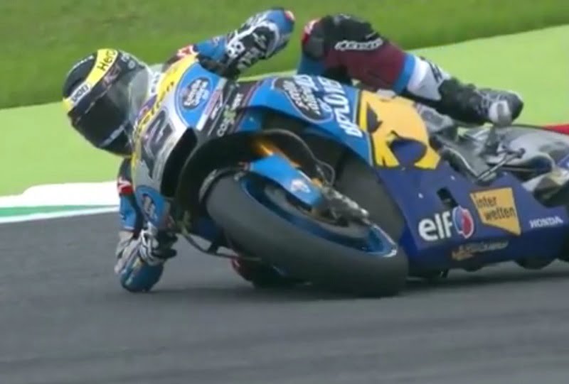 Photo ci-dessus : Tom Lüthi imitant Marc Marquez (avec une issue moins favorable) au Mugello. Copyright Dorna TV / Vidéopass
