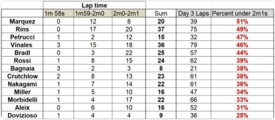 Rins a également réalisé le plus grand pourcentage de tours sous les deux minutes et une seconde (2’1). C’est également bon signe ?