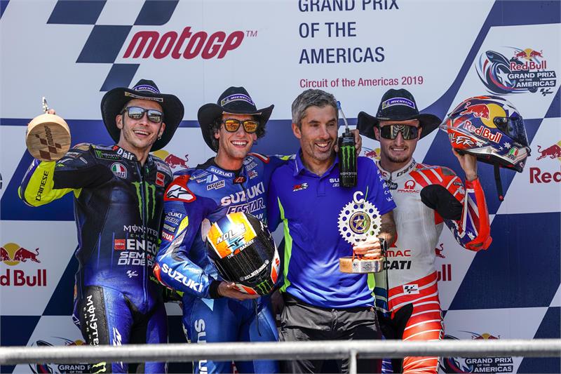 « Ce fut un GP tendu, parce qu’il est revenu de loin. Alex Rins est parti de la troisième ligne, mais en début de course il n’était pas aux avant-postes. Puis petit à petit il est revenu sur Valentino et il a fait la course parfaite, y compris sur le plan tactique. Ça a été une surprise parce que c’était un circuit où on ne s’attendait pas à être très performants ».