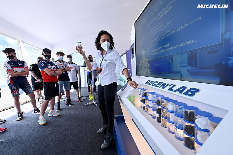 « Oui, car l’objectif du groupe Michelin est d’avoir au moins 40 % de matériaux durables dans tous les pneus en 2030, et en 2050 tous les pneus Michelin, que ce soit pour les motos, les camions ou les avions, l’objectif est d’arriver à 100 % de matériaux durables. Ceux-ci peuvent être des matériaux usagés, comme les vieux pneus recyclés, ou des matériaux naturels ou bio-sourcés, comme les écorces des riz ou les feuilles de maïs. Tout ce qui naturel mais qui ne rentre pas dans la chaîne alimentaire. La compétition sert aussi de banc d’essai dans ce domaine pour les futurs pneus de série. »