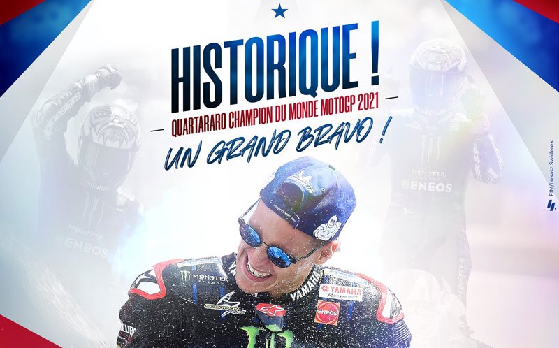 « Évidemment ! C’est évidemment Fabio, mais à travers lui c’est la France qui gagne, c’est le sport moto qui gagne, avec tous ses acteurs, y compris ses acteurs majeurs comme Claude, et on a vraiment hâte de voir l’an prochain sur le Grand Prix de France Fabio avec son numéro de champion du monde. Tous ensemble, nous devons partager ce projet pour faire en sorte qu’il soit une réussite collective dans les prochaines années. »