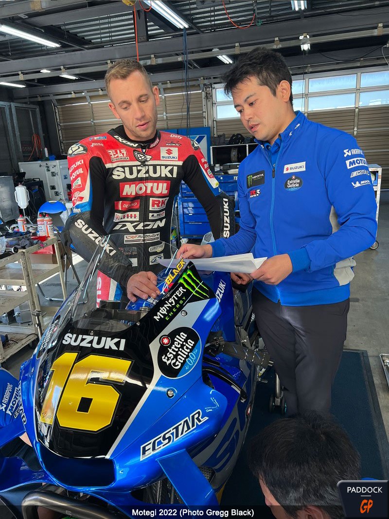 « Oui, j’ai discuté avec les gens de Suzuki et tout le monde est déçu, très déçu, de l’arrêt de Suzuki, parce qu’ils ont mis corps et âmes toute leur énergie pour développer la moto, avec un petit budget par rapport à des teams comme Honda ou d’autres. Et avec le temps, l’énergie, la réflexion, et tout ce qu’ils ont mis à créer cette moto et ce team, qui au final est un super package, non seulement au niveau de la moto et du team mais aussi de l’entente entre les pilotes et le staff, ils ont été hypers déçus de cet arrêt du team. Après, les motos, vu qu’ils ont un système de taxe au Japon, la plupart va à la destruction. »