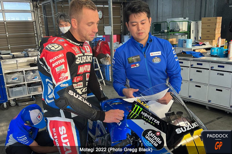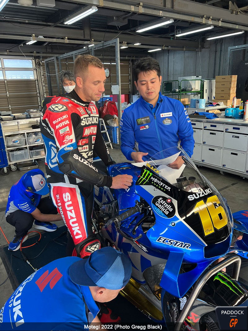 « Oui, j’ai discuté avec les gens de Suzuki et tout le monde est déçu, très déçu, de l’arrêt de Suzuki, parce qu’ils ont mis corps et âmes toute leur énergie pour développer la moto, avec un petit budget par rapport à des teams comme Honda ou d’autres. Et avec le temps, l’énergie, la réflexion, et tout ce qu’ils ont mis à créer cette moto et ce team, qui au final est un super package, non seulement au niveau de la moto et du team mais aussi de l’entente entre les pilotes et le staff, ils ont été hypers déçus de cet arrêt du team. Après, les motos, vu qu’ils ont un système de taxe au Japon, la plupart va à la destruction. »