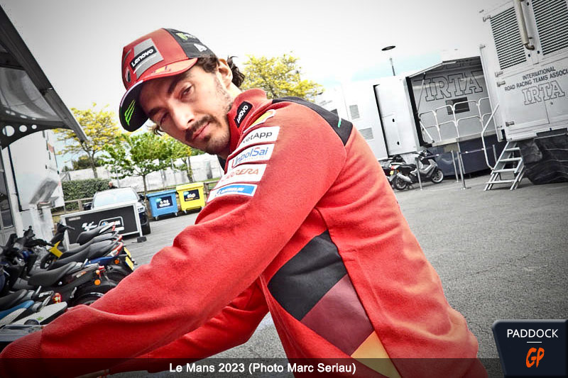 Hervé Poncharal : « Ce que j’en pense, c’est que, comme bien souvent, le dimanche soir quand je rentre avant de me coucher, je n’ai pas vécu assez de MotoGP donc je lis tout ce qui s’écrit sur un peu tous les sites nationaux et internationaux, et je suis tombé sur un site italien où y avait une interview de Pecco Bagnaia qui parlait un petit peu de son problème avec Maverick Viñales, et puis je lisais comme ça et j’ai été très surpris de la part du champion du monde en titre, de quelqu’un qui est respectable, que je respecte énormément, pour qui j’ai beaucoup d’admiration, et qui est toujours assez posé dans ses commentaires, de lire une énormité, je pourrais même dire une énorme connerie, parce que Pecco Bagnaia, comme tout pilote, vient du Moto3, il est passé par le Moto 2, il est arrivé en MotoGP dans une écurie indépendante qu’on peut appeler privée ou satellite, on l’appelle comme on veut, et il était content d’avoir une moto performante qui lui permettait de se faire remarquer. Et puis, au fur et à mesure de son évolution dans cette catégorie MotoGP, on lui a proposé un guidon d’usine, ce qui est un petit peu le parcours rêvé et que tout pilote talentueux souhaite avoir. »