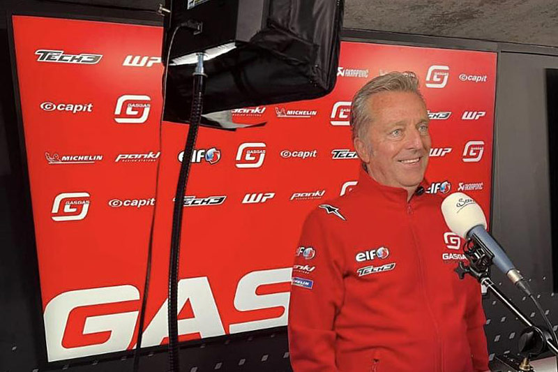 « Et là, quand on sait le travail qu’on a fait, nous, pour pouvoir avoir une grille décente, nous les équipes indépendantes, avec la Dorna, avec la FIM, avec la MSMA, on est arrivé à convaincre les constructeurs qu’il fallait qu’ils nous équipent de machines performantes, que c’était pour leur intérêt pour promouvoir des jeunes pilotes, pour avoir une politique sportive digne de ce nom, pour avoir plus de retour d’informations, ce qu’on appelle le retour de datas de plus de pilotes. Et finalement, on est arrivé à ce que quasiment toutes les motos qui étaient sur la piste soient des motos d’usine de l’année, à part quelques Ducati qui ont un an mais qui sont très performantes, mais en tout cas chez Honda, dans le groupe Pierer Mobility, on a des motos qui sont des 2023, et je pense que c’est une situation fabuleuse ! Comme vous l’avez remarqué, les 4 premières positions au Grand Prix de France, c’était 4 écuries indépendantes, et c’est fabuleux de voir que la course au titre est grande ouverte, qu’il y a un point entre Bezzecchi qui est un jeune pilote qui arrive sur une moto Ducati d’un team privé et qui est un point derrière Bagnaia sur la moto officielle de la même usine. C’est génial pour tout le monde, c’est génial pour le sport, c’est une belle émulation et ça nous permet nous, les écuries indépendantes de convaincre nos partenaires, qu’on peut appeler les sponsors aussi, de se joindre à nous parce qu’on leur dit qu’on n’est pas là uniquement pour faire du remplissage de grille mais qu’on est là aussi pour faire des performances! On peut gagner des courses et éventuellement viser le titre. »