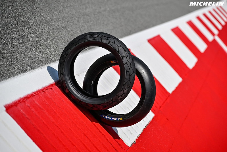 « Les pneus MotoE sont effectivement plus tendres, et comme les courses sont très courtes on a besoin d’un warm up très très rapide. On ne peut pas attendre 2 pour qu’ils soient en températures, pour une course de 7 ou 8 tours. Donc ils ont un warm up instantané, et c’est vrai que dans des conditions froides ils sont super, super performants. En plus la MotoE, souvent ils roulent le premier jour le matin à 8 heures, et quand tu roules à 08h00 au Mans, la piste est à 9 ou 10°…