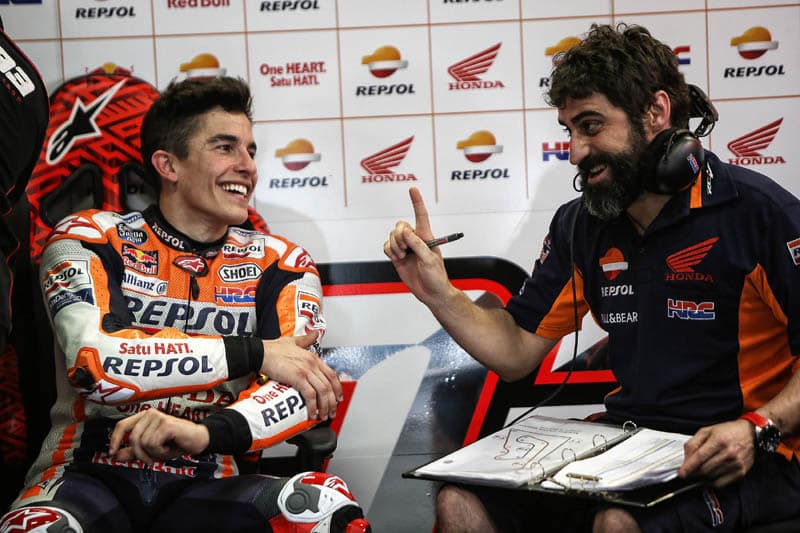 « Marc a déjà traversé une période difficile lorsqu’il a eu son accident en 2011, où il a passé beaucoup de temps sans courir alors que nous ne savions pas s’il allait se remettre de cette blessure. Il a surpris tout le monde en remportant la première course au Qatar l’année suivante. J’étais très prudent quand on m’a demandé quel niveau Marc allait atteindre lors de la première course mais, à l’intérieur, je ne doutais pas qu’il puisse se battre pour la victoire. Marc nous montre chaque jour qu’il est un combattant et qu’il est performant face à l’adversité. Je savais que Marc pouvait faire une belle course ».