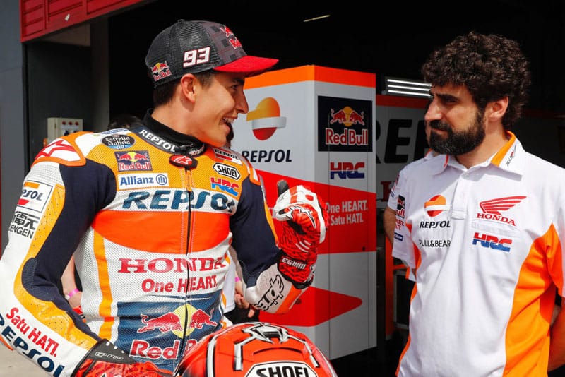 « Marc m’a surpris dès le premier jour où j’ai collaboré avec lui, à cause d’un commentaire qu’il a fait sur la moto et comment il s’est exprimé. Je dis toujours la même chose : Marc me surprend tous les jours. Ce n’est pas à moi de lui dire ce qui doit être amélioré. C’est un pilote qui apprend constamment et qui est capable d’enlever des choses à ses erreurs. Parfois, j’apprends plus de lui que lui de moi, et c’est bien aussi ».