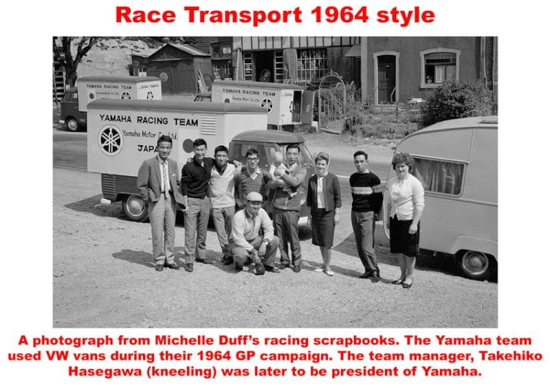 Pour bien comprendre l’évolution foudroyante des Grands Prix lors des deux décennies précédentes, voici les camions-ateliers et l’hospitality de l’usine Yamaha en 1964…