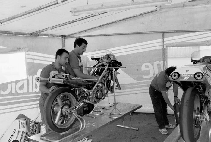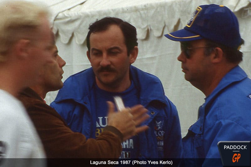 La vie des pilotes n’était pourtant pas rose pour autant, comme nous le détaille aujourd’hui Jean-Marc Bonnay, alias Snoopy, qui officiait alors comme coordinateur sous les ordres de Jacky Germain au sein du team Sonauto–Gauloises qui alignait Christian Sarron en 500cc :