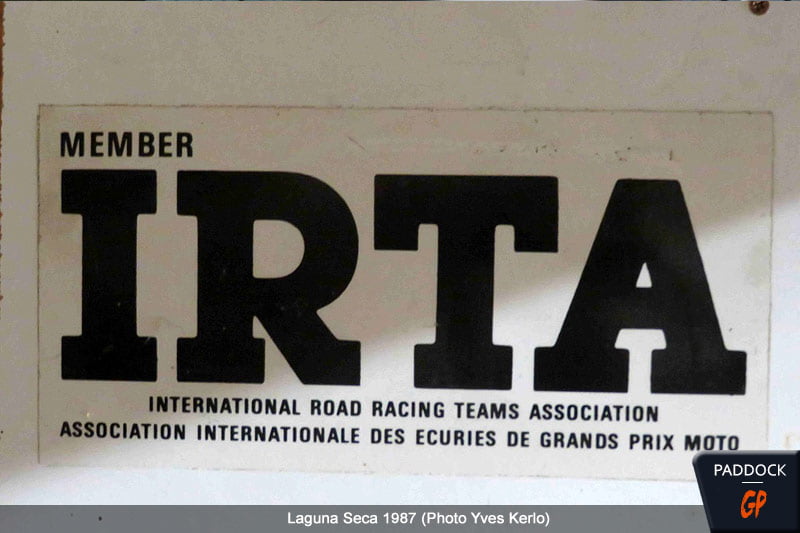 « L’IRTA naîtra en toute logique de tout cela, grâce à des gens comme Serge Rosset (qui fait courir les ELF 500cc avec Ron Haslam), Snoopy (voir plus haut et plus bas), Michel Métraux (entre autre représentant ELF en Suisse et team manager de la Parisienne avec Pierre Bolle en 250cc), puis les Anglais qui reniflent assez vite qu’il y a un pouvoir à prendre. »