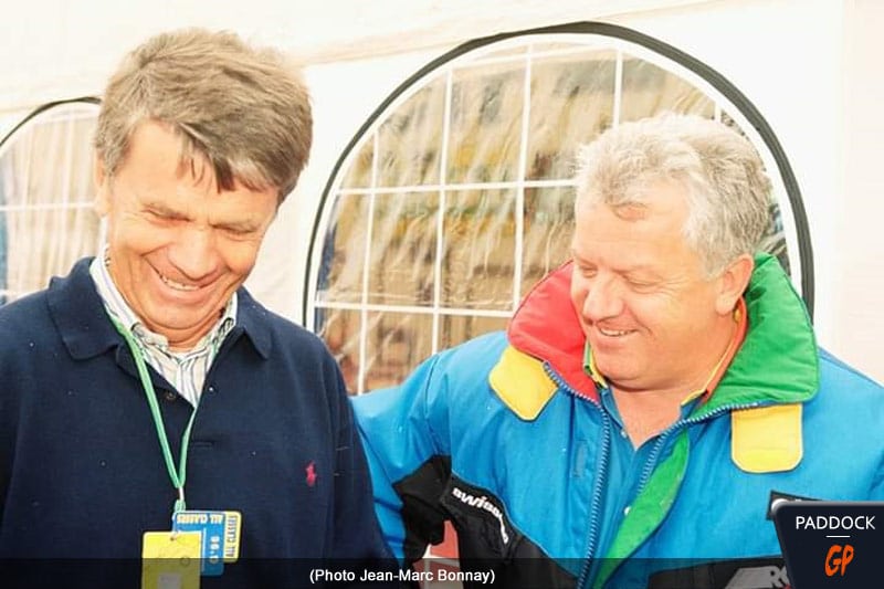 Jacques Hutteau: « En 1987, après le Grand prix de Saint-Marin à Misano, on devait se rendre à Jarama en Espagne, pour le Grand prix du Portugal. Sur la route, je m’arrête dans un immense camping du sud de la France et le patron me place par le plus grand des hasards juste à côté du gros camping-car américain de Mike Trimby. Bien sûr, on se connaissait, mais sans plus. Au moment où je gare ma caravane, il tape dessus et plaisante : « non, non ! Ici c’est réservé à l’IRTA ! ». Puis il m’invite à boire un verre et la discussion se porte évidemment sur les avantages censés être procurés par l’IRTA. Au début, j’étais un peu réticent mais il m’explique que tout le monde va y gagner, pilotes privés compris. Puis il m’indique qu’il cherche quelqu’un qui pourrait se charger d’organiser le paddock en 1988. Je ne saute pas tout de suite sur l’occasion car je tenais absolument à terminer le dernier Grand Prix de la saison, mais au fond de moi je savais que ce serait le dernier. Et effectivement, après une course difficile à Jarama en raison de problèmes électriques, je suis allé le voir pour lui signifier mon intérêt. Durant l’hiver, on s’est mis d’accord et on a commencé à travailler. Mon rôle était de commencer à préparer l’arrivée de ceux qui étaient adhérents à l’IRTA pour les mettre dans les meilleures conditions, mais aussi de ne pas mettre mes anciens copains, pas encore adhérant à l’IRTA, aux endroits privilégiés. Tout ceci, évidemment, pour les inciter à adhérer à l’IRTA. Je dois vous avouer que je n’ai pas été très bien dans ma tête pendant un bon moment, d’autant que certains m’en ont vraiment beaucoup voulu. J’ai donc beaucoup travaillé pour ne jamais mettre quelqu’un dans des conditions difficiles et organiser le paddock du mieux possible. Parfois, c’était très difficile, comme à Imola qui avait un paddock très petit et où le directeur du circuit voulait mettre les 500cc dans les box, les 250cc dans le paddock derrière, les 125cc dans le verger plus loin et les hospitalités de l’autre côté de la piste, sur la grande place. Évidemment, je n’étais pas d’accord et j’ai bossé toute la journée avant d’envoyer un fax le soir à Mike Trimby pour lui présenter ma proposition de retirer du paddock tous les camping-cars et les caravanes pour les placer dans le verger, et mettre les 125cc sur le bitume du paddock, avec tous les autres concurrents. C’est là qu’on a commencé à séparer les zones de vie et les zones de travail du paddock. Peu à peu, tout doucement, en peut-être deux ans, tout le monde a adhéré à l’IRTA et y a beaucoup gagné…».