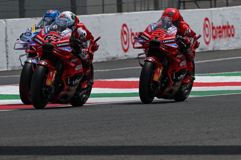 Le circuit du Mugello a une nouvelle fois tenu ses promesses. Dans un Sprint disputé sous une chaleur accablante, Marc Márquez (Ducati Lenovo Team) a converti sa 100e pole position en victoire… mais pas sans effort. Le n°93 a dû se battre pour s’imposer face à son frère Alex Márquez (BK8 Gresini Racing MotoGP) et Francesco Bagnaia (Ducati Lenovo Team), troisième après avoir mené le premier tour.