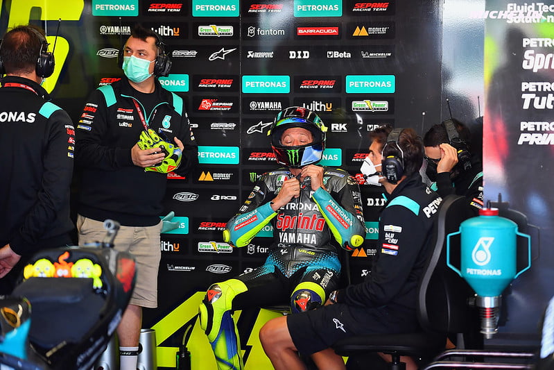 Valentino Rossi : « Une journée difficile pour moi, en particulier l’après-midi, aussi parce que nous avons commencé avec le pneu dur et ce n’était pas le bon choix puisque je n’avais pas assez d’adhérence. Mais à la fin, j’ai fait deux ou trois tours avec le tendre à l’arrière et j’ai amélioré mon chrono mais ma position est restée mauvaise. Je n’ai pas de très bonnes sensations sur la moto car j’ai des problèmes au freinage, pour ralentir la moto, et je suis lent dans les changements de direction. Ici, c’est très important et nous devons travailler. Nous devons essayer d’améliorer notre vitesse par rapport à aujourd’hui. »