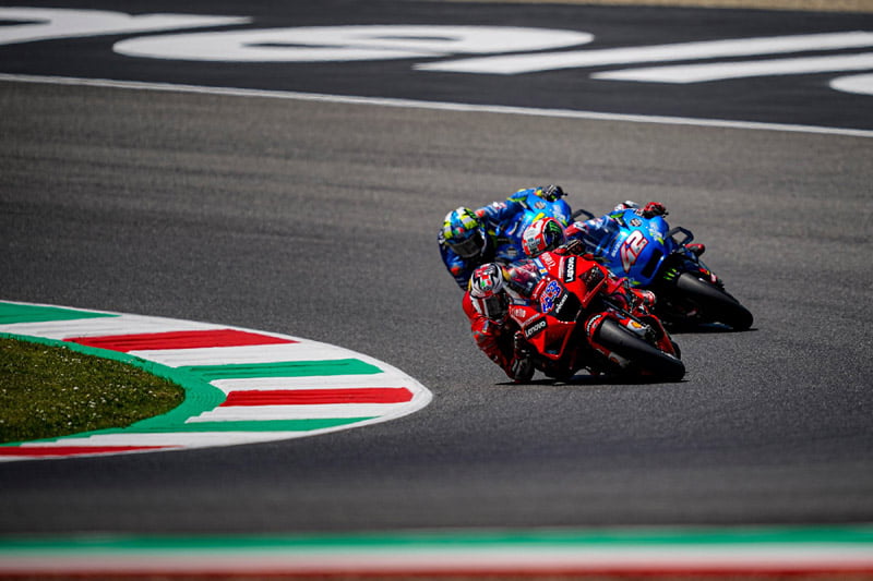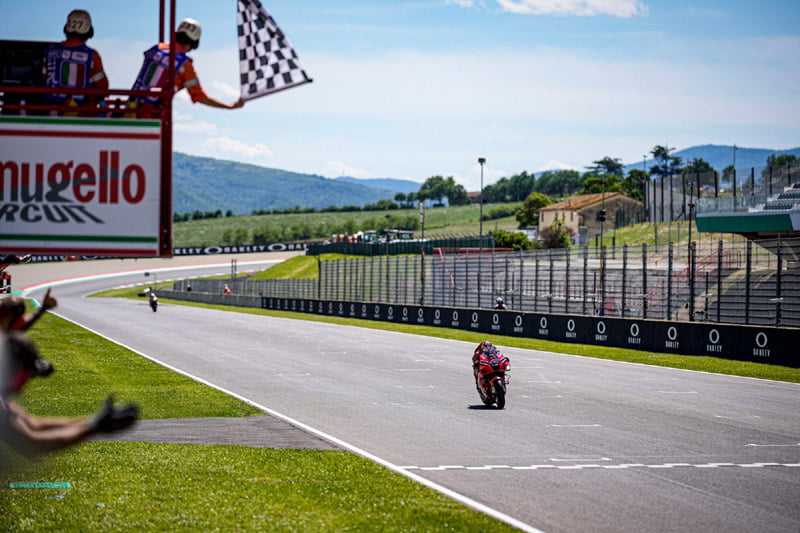 Le Mugello est un endroit que j’aime, que tous les pilotes aiment, et qui nous a tous manqué l’année dernière. Il ne m’avait pas beaucoup aimé en retour, parce que mes résultats avant cette année avaient été assez mauvais, soyons honnêtes. Les deux années où nous avons couru avec la livrée jaune de Ducati, j’étais dans le groupe de tête, mais j’ai dû le laisser tomber. C’est un circuit sur lequel vous aimez rouler avec une MotoGP, mais sur lequel j’ai déjà fait des erreurs stupides, donc disons que ce n’est pas parce que je ne suis pas assez rapide. Donc, comme au Mans… j’avais quelques comptes à régler en arrivant là-bas et j’ai pu redresser la barre, et l’objectif pour le Mugello était le même.