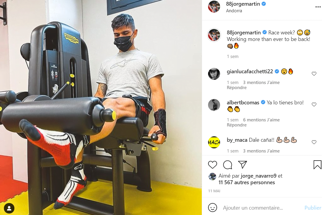 Jorge Martin est passé du paradis d’une pole position et d’un podium après son deuxième Grand Prix en MotoGP à l’enfer de la chute et des blessures lors du meeting suivant à Portimao. Le pilote Pramac Ducati avait annoncé de son lit de douleur qu’il ferait son retour à l’occasion du Grand Prix d’Italie au Mugello, qui aura lieu à la fin de ce mois de mai. Il a montré sur son réseau social qu’il s’entrainait beaucoup pour ça. Mais pour le moment, rien n’est garanti…