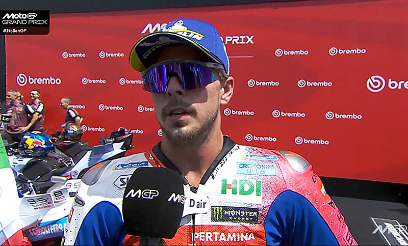 A peine descendu de sa Ducati GP25 du team satellite Pertamina Enduro VR46 Racing Team après avoir terminé 3e du Grand Prix d’Italie MotoGP 2025 au Mugello, Fabio Di Giannantonio s’est confié devant les caméras du site officiel MotoGP.com avec la joie d’obtenir son premier podium sur ses terres du Mugello…