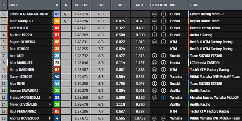 Résultat de la Qualification 2 du Grand Prix d’Italie MotoGP au Mugello :