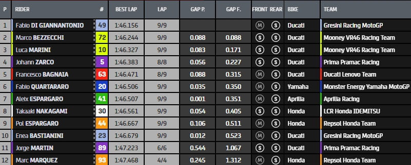 Résultat de la Qualification 1 du Grand Prix d’Italie MotoGP au Mugello :