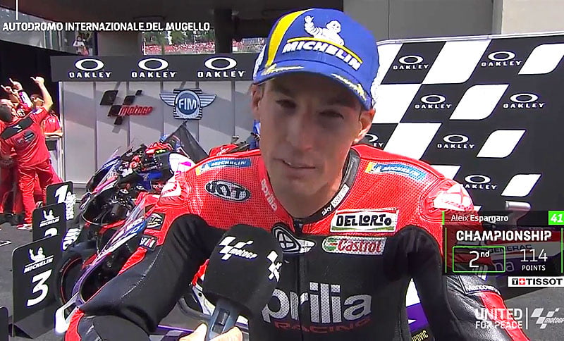 A peine descendu de son Aprilia RS-GP officielle après avoir obtenu la 3e place du Grand Prix d’Italie sur le circuit du Mugello, Aleix Espargaró s’est confié devant la caméra du site officiel MotoGP.com avec des sentiments mitigés…