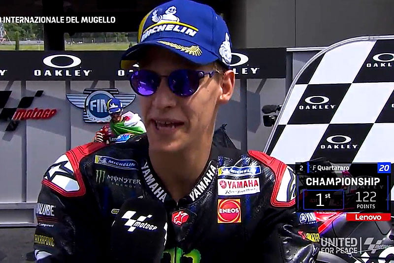 A peine descendu de sa Yamaha YZR-M1 officielle après avoir obtenu la 2e place du Grand Prix d’Italie sur le circuit du Mugello, Fabio Quartararo s’est confié devant la caméra du site officiel MotoGP.com avec la joie d’un résultat inespéré au vu de la difficulté du weekend.