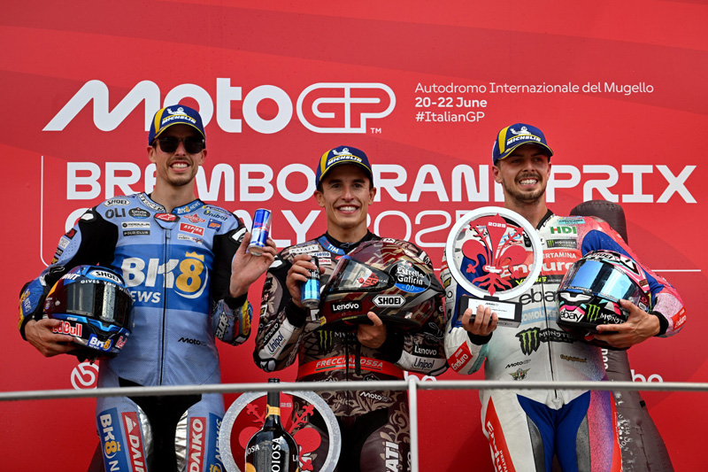 Dimanche, la victoire du Grand Prix est également revenue à Marc Márquez, toujours devant son frère Marc. La troisième marche du podium est occupée par Fabio Di Giannantonio (Pertamina Enduro VR46 Racing Team).