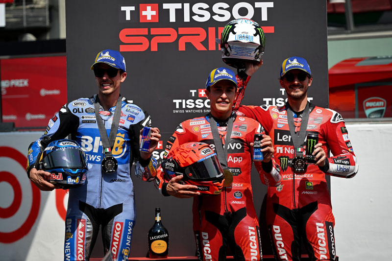 Samedi après-midi la Tissot Sprint a été remportée par Marc Márquez (Ducati Lenovo Team), devant son frère Marc Márquez (BK8 Gresini Racing MotoGP), et son coéquipier Francesco Bagnaia.