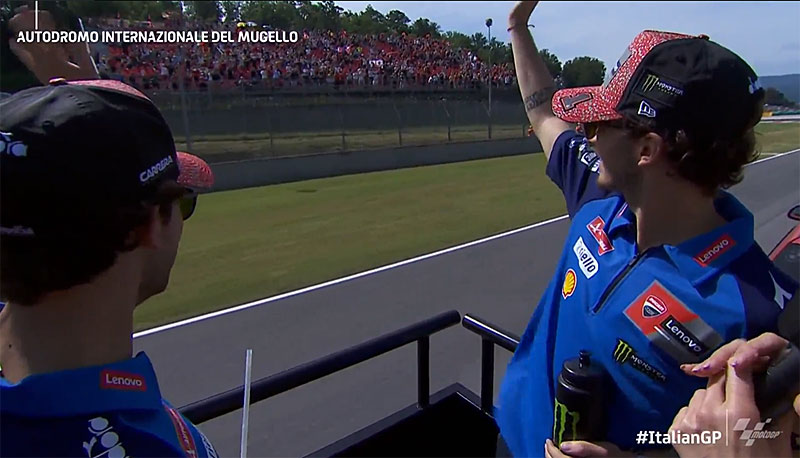 La parade des pilotes MotoGP a su faire sa place dans le programme du week-end en devenant une tradition qui satisfait à la fois les spectateurs présents, aujourd’hui sur le circuit du Mugello pour le Grand Prix d’Italie, mais aussi les pilotes pour qui il s’agit du seul moment où ils peuvent communiquer tous ensemble.