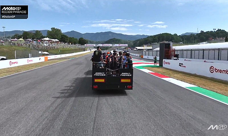 La parade des pilotes MotoGP a su faire sa place dans le programme du week-end en devenant une tradition qui satisfait à la fois les spectateurs présents, aujourd’hui au Mugello pour le Grand Prix d’Italie, mais aussi les pilotes pour qui il s’agit du seul moment où ils peuvent communiquer tous ensemble sans enjeu.