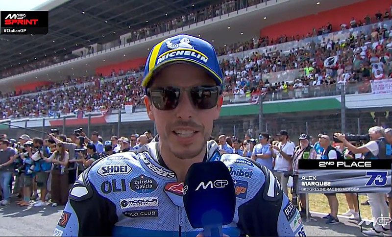 A peine descendu de sa Ducati GP24 du team satellite Gresini Racing après avoir terminé 2e du Sprint du Grand Prix d’Italie MotoGP 2025 au Mugello, Alex Marquez s’est confié devant les caméras du site officiel MotoGP.com avec la joie d’avoir fait une belle course et l’impatience d’être à demain…