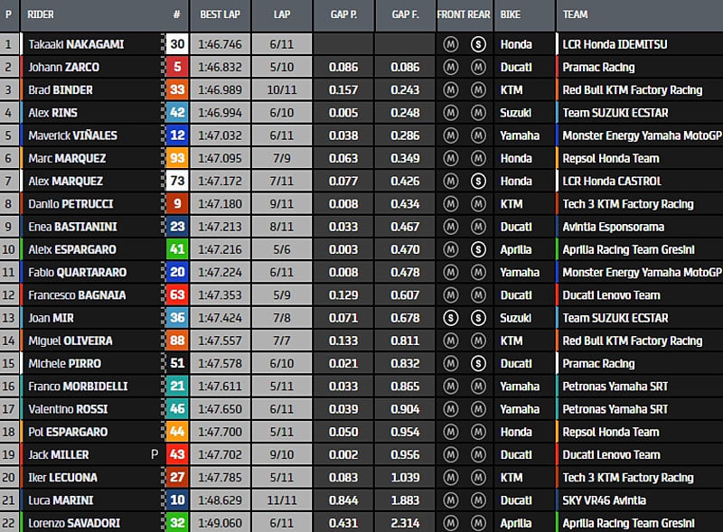 The @lcr_team rider tops warm-up ahead of @JohannZarco1 and @BradBinder_41 🏁#ItalianGP 🇮🇹 pic.twitter.com/dpwTx0ANlM