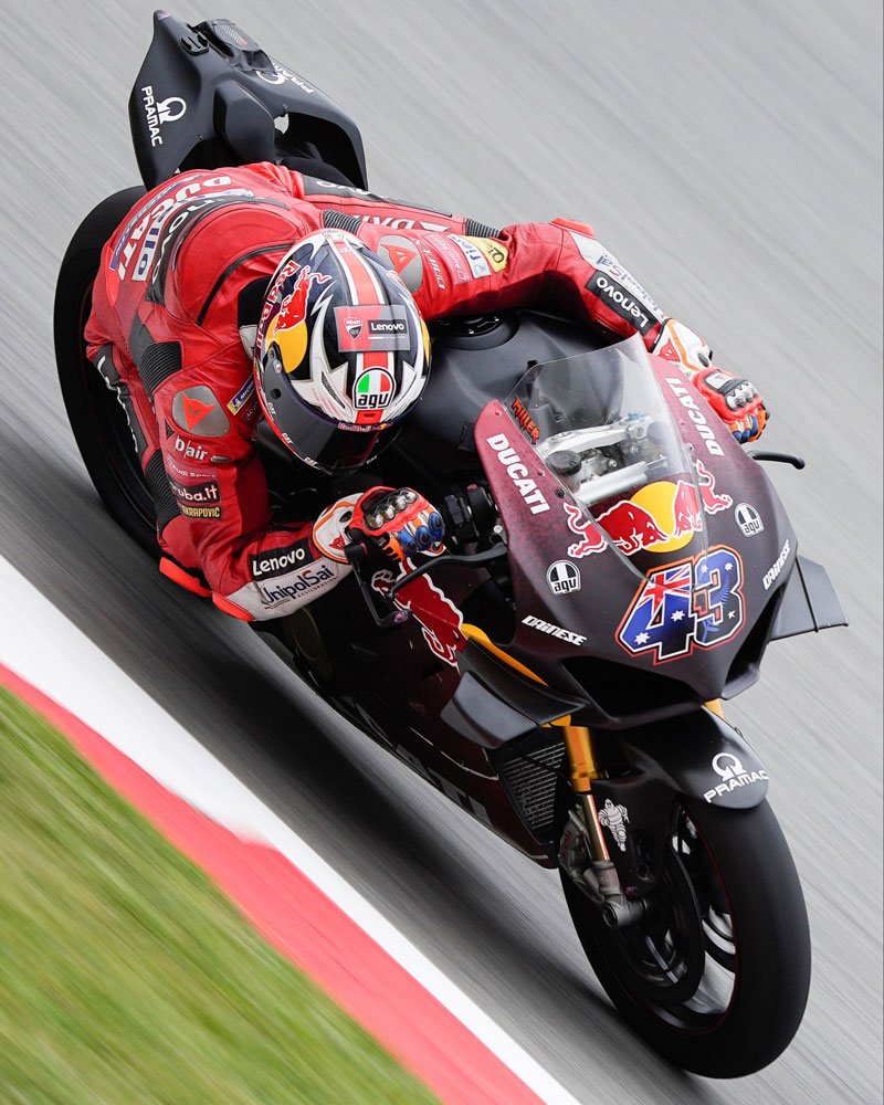 Jack Miller roulait bien entendu sur sa Panigale V4S puisque les pilotes MotoGP n’ont dorénavant plus la possibilité de participer à des essais privés dans cette catégorie.