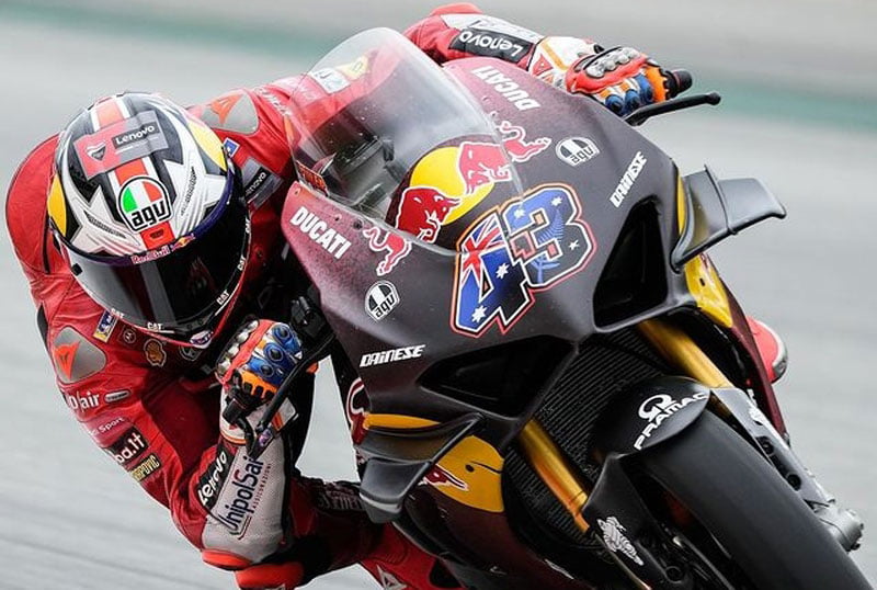Jack Miller roulait bien entendu sur sa Panigale V4S puisque les pilotes MotoGP n’ont dorénavant plus la possibilité de participer à des essais privés dans cette catégorie.