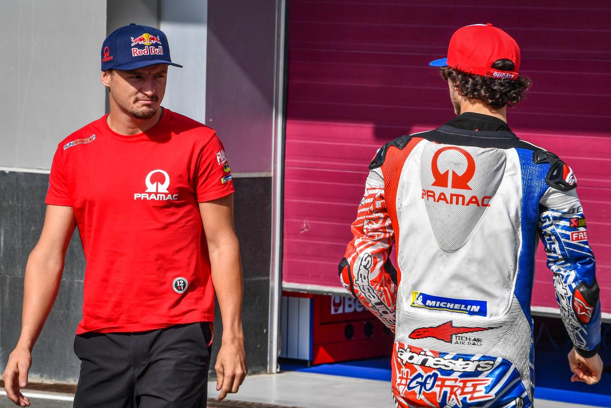 Son équipier Jack Miller a été aux premières loges pour évaluer le parcours de l’Italien. A présent avec un contrat du team usine dans sa poche, l’Australien lui prodigue quelques conseils dans un chat en direct avec le présentateur de Sky Antonio Boselli : « je ne pense pas que cela soit lié à Pramac ou Ducati. Pecco attend parfois trop de lui-même. « Go free » est écrit sur sa combinaison de course, mais je ne vois aucune personne libre » commence le pilote de 25 ans sur son cadet de deux ans.