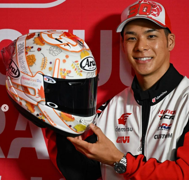 On en profite pour observer la décoration spéciale du casque de Takaaki Nakagami.