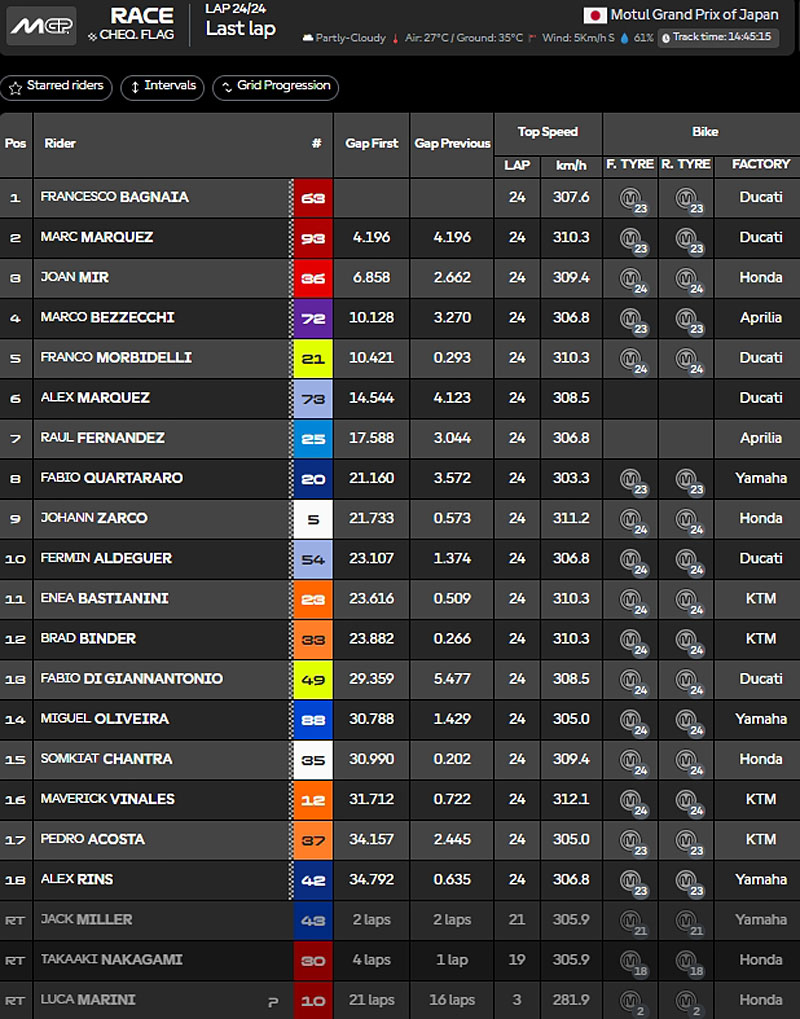 Résultat du Grand Prix du Japon à Motegi :