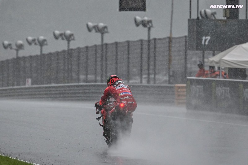 Franceso Bagnaia : « Oui, c’était assez difficile. J’ai fait un très bon flag to flag, mais ensuite je me suis retrouvé coincé avec le limiteur pour la pit lane et j’ai perdu 3-4 positions dès le début. Mais je comprenais bien la situation, je contrôlais beaucoup l’accélérateur en sortie de virage pour ne pas trop user le pneu arrière, et j’espérais faire plus de tours pour rattraper Jorge, parce que j’essayais de gagner tour après tour sans trop forcer. Et rien : quand j’ai vu le drapeau rouge, j’ai compris que c’était le bon moment parce que c’était très, très risqué. L’aquaplaning commençait à devenir trop important, c’était la bonne décision. Mais malheureusement, nous n’avons pas eu le temps de terminer la course, parce que je pense qu’avec la gestion des pneus arrière, j’étais assez compétitif dans la dernière partie de la course. »